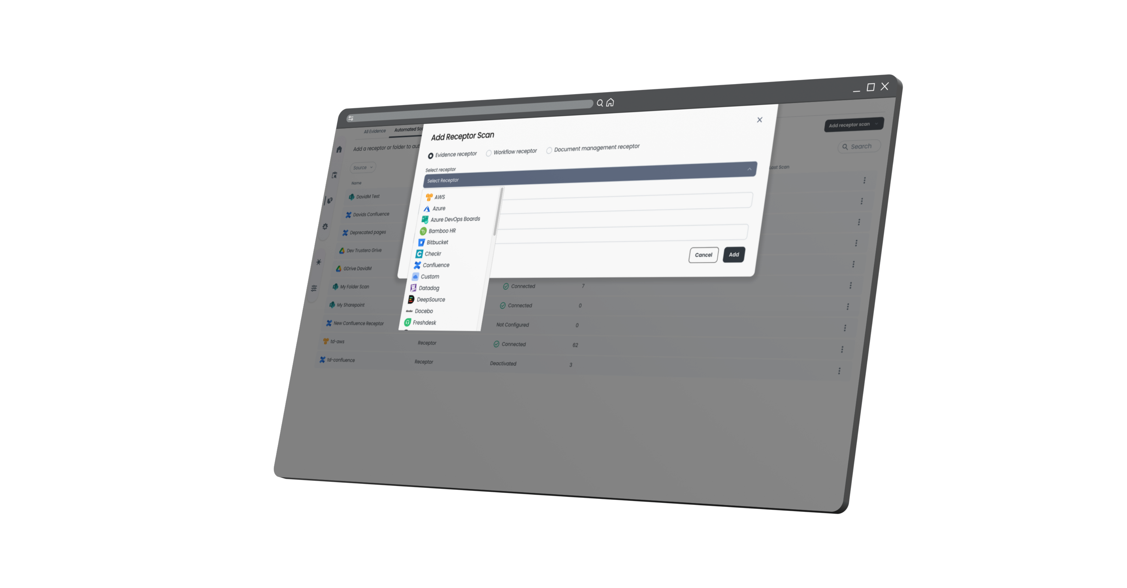 Connect Trustero directly to your tech stack — cloud infrastructure, identity providers, HR systems, security tools, and more. Our evidence receptors automatically pull the data you need for every control, on a continuous basis.