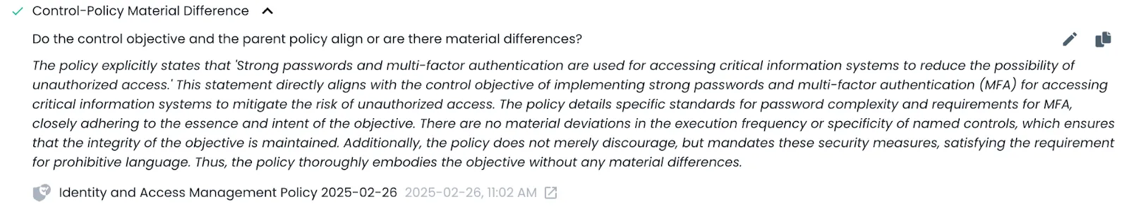 The control-policy material difference check will also now include a link to the policy that was examined.