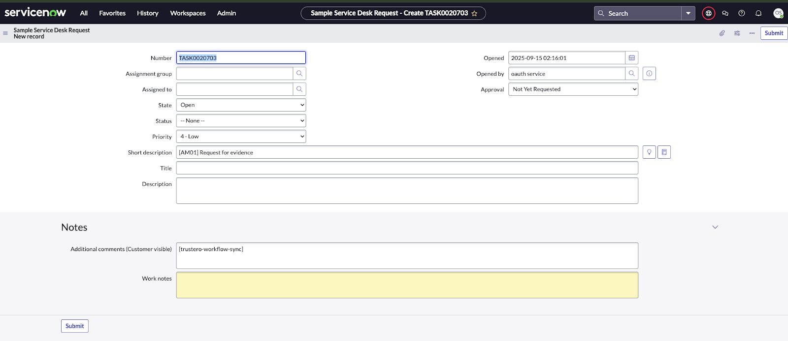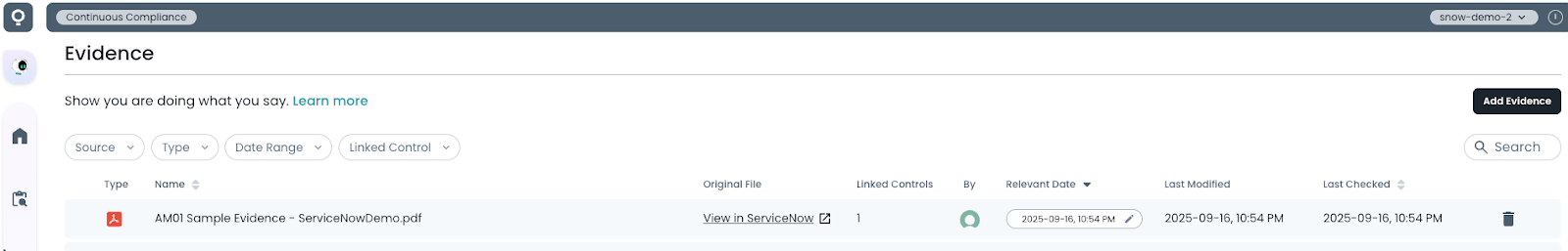 The ServiceNow integration is available now. Login to the app and connect your ServiceNow environment in Integrations → Workflow Management Systems and start collecting evidence more efficiently.